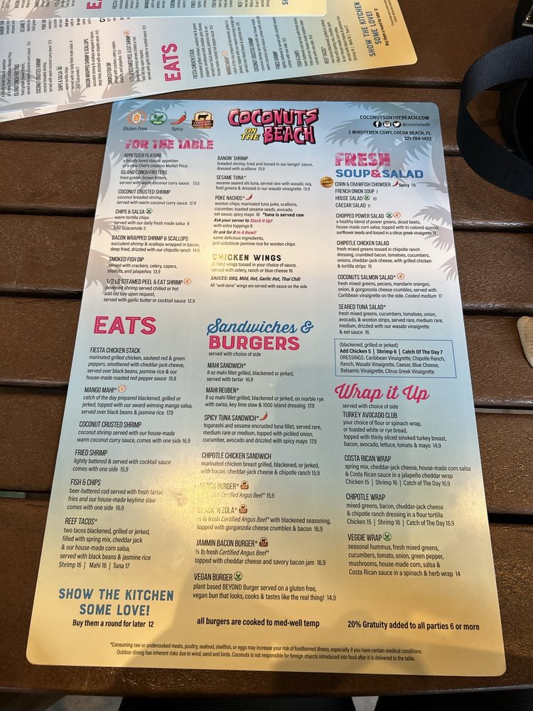 “ In cocoa beach to board a cruise and I wanted to eat at a local spot. I googled best places and Coconuts popped up first. It lived up to the hype for me. I got the mahi jerk Reuben sandwich and it was absolutely delish! Never thought that combo would be good but it was was. And for dessert the pineapple creme brûlée is a must try. They have live music often out on the patio and if you're lucky enough you can catch a space launch from the patio as well. I enjoyed everything abt this visit, staff was friendly and amazing as well. ”